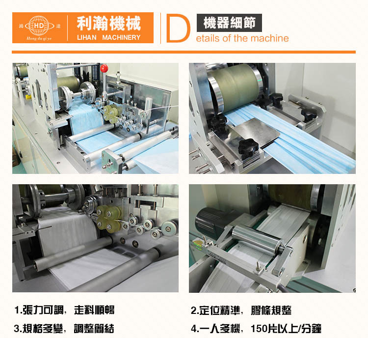 3.打片平坦, 產值高,可依據客戶要求出產1-4層資料的口罩