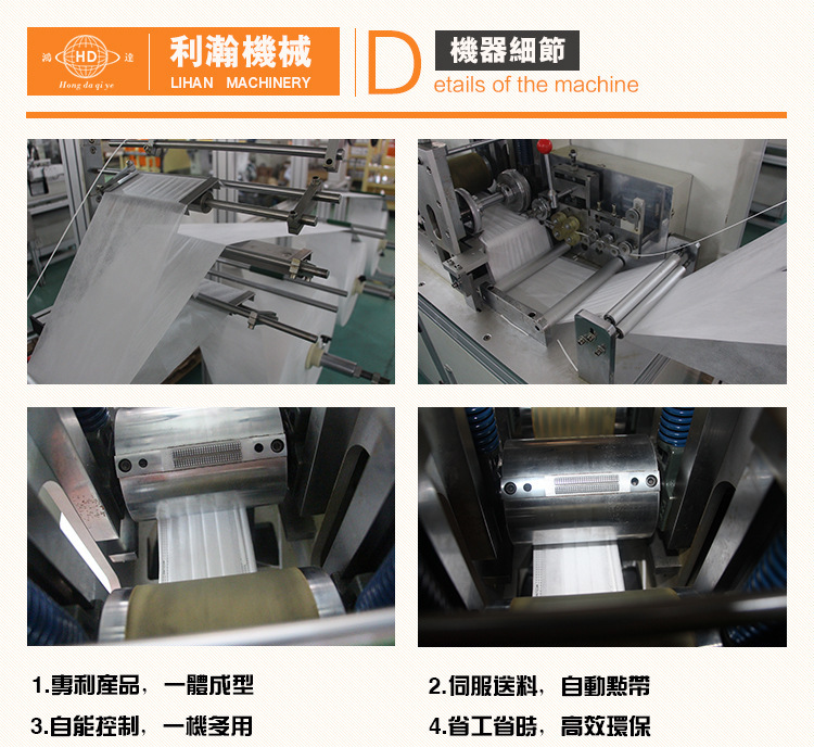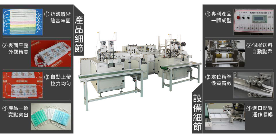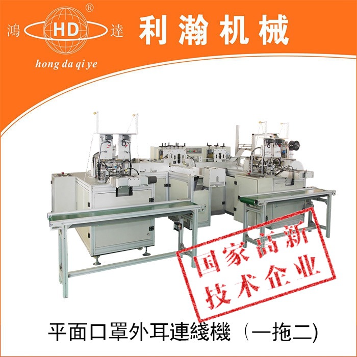 “鴻達牌”一拖二平面口罩外耳連線機,是為出產高端口罩的抱負設備,設備從質料進入到制品輸出,全程主動作業,削減口罩在出產過程人體的觸摸,然后輕松到達職業檢測規范,在產能方面到達較高的出產量;該機是三臺設備組成,即平面口罩本體機一臺,外耳帶設備兩臺,經過程序控制,將口罩本體主動傳送到耳帶焊接設備上, 然后到達全主動化作業,很大程度的降底了人工成本。