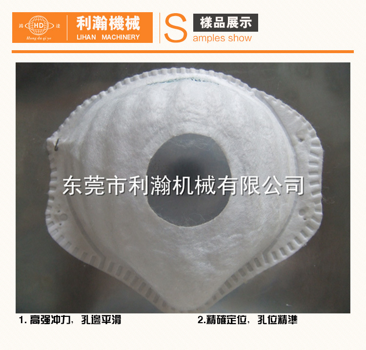 1.機械式沖孔,出產效率高,口罩沖切表面光潔,精確度高;操作簡潔。