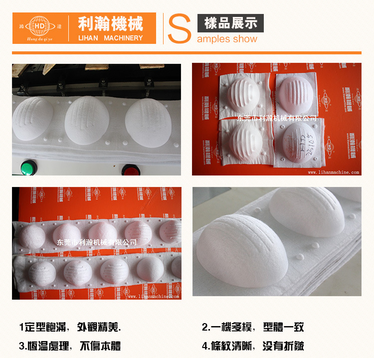 杯型口罩定型機,又稱N95口罩熱壓成型機,該機主要是使用熱壓定型的原理來完結 杯型口罩內層針剌棉定型的工藝。該機一出六雙工位規劃(單/雙人可獨立操作)本機將傳統比較冗雜的口罩出產工藝進行技能革新,到達從原材料高效定型的作用,經過核心技能工藝規劃,然后有用的維護口罩在定型過程中防止遭到的損傷,然后使出產的各款口罩到達歐美嚴厲的檢測規范,是出產N95、防塵、各型體杯型口罩的抱負配套設備。