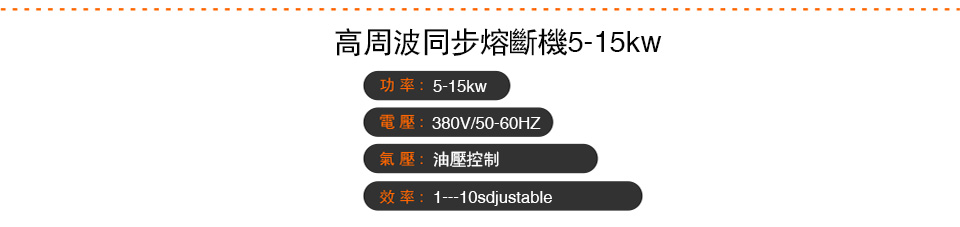 2、本機可以分兩段出力,由于本機采用了空油壓方式,熔熔接時由空壓缸出力,當(dāng)熔接好后,油缸再出力切斷,兩段出力也是高周波熔斷機的主要特點之一。