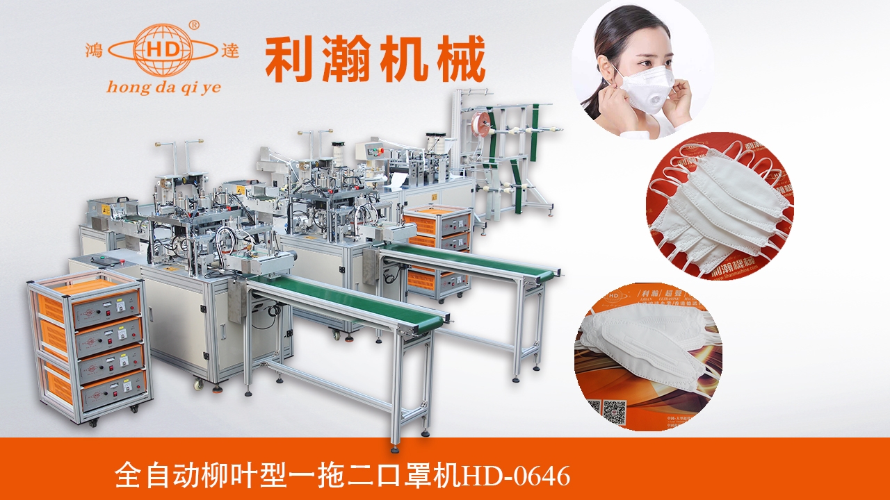 “鴻達牌”超聲波柳葉型一拖二口罩機,是利瀚企業精心研發的一款高速型的設備,該設備是利用程序化控制自動完成生產,是生產柳葉型口罩人工線的替代設備,從原材料到口罩本體成型,自動翻片、自動上耳帶、自動耳帶內折,出成品均為自動化作業,效率為75-80 pcs/min; 利瀚企業不斷為客戶提供完善的自動化設備。