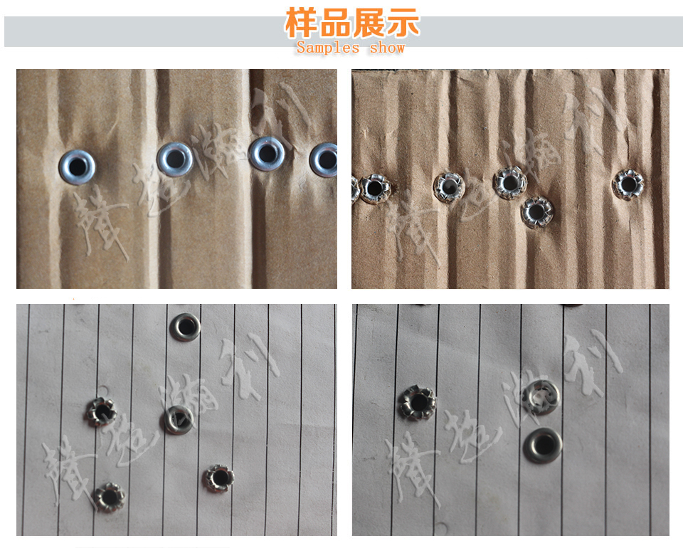 適用行業(yè) 適用于空心釘、中空釘之鉚合。屬鋁箱、化妝箱、珠寶盒等機器; 皮帶接頭、皮包扣帶等均可使用.