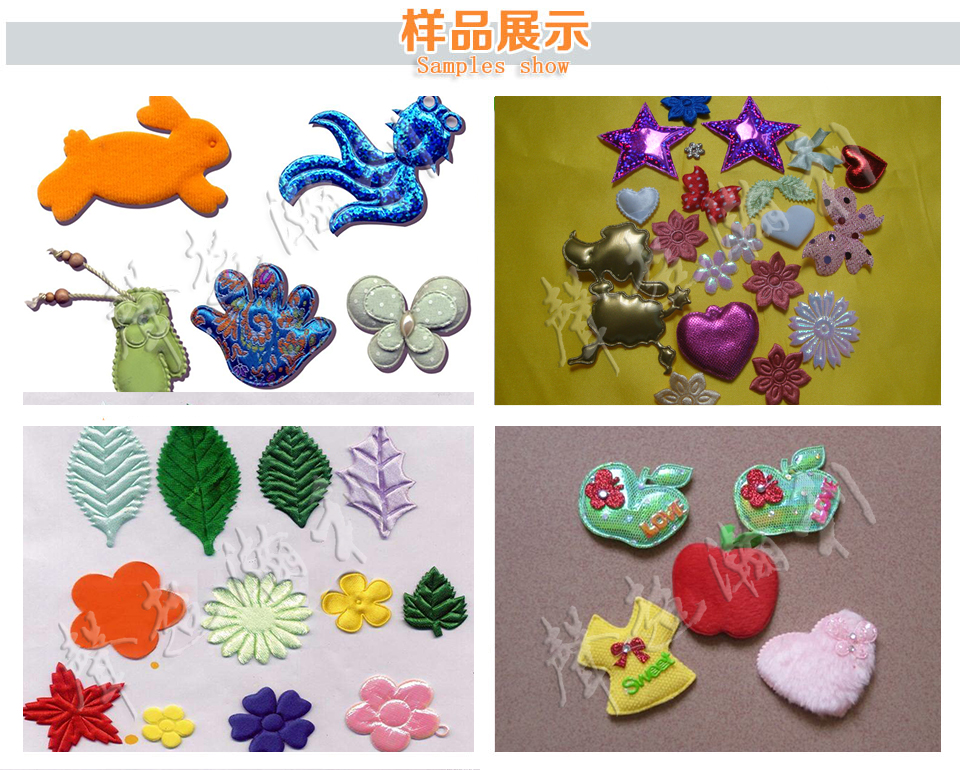 6.超聲波原理將單層或雙層化纖布料加海綿或噴膠棉沖成一個個動物或花朵的物品.